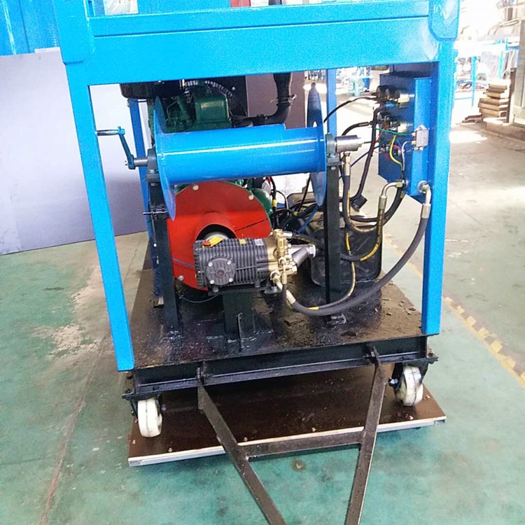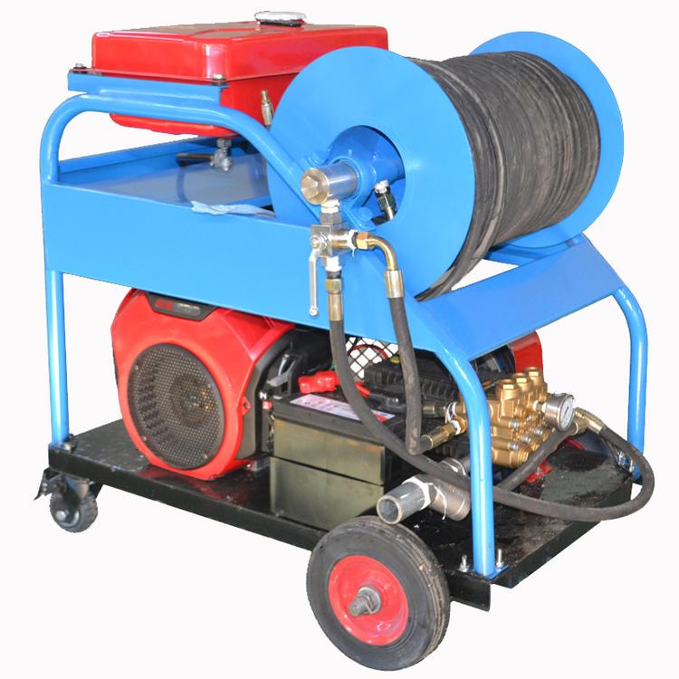 工作原理:疏通机使用柴油机驱动高压泵产生高压水射流,通过高压软管将疏通喷嘴连通到高压泵上,然后将喷嘴直接放在管道中需疏通。高压泵工作时,使用喷嘴的后部。喷射的高压水产生的反作用力将喷嘴迅速向前促进,并使用喷嘴前后的喷嘴产生的高压水射流。喷嘴以迅速清洁管道。当软管卷收器将喷嘴向后拉时,高压河水将从管束中洗出的排泄物从管中清除。