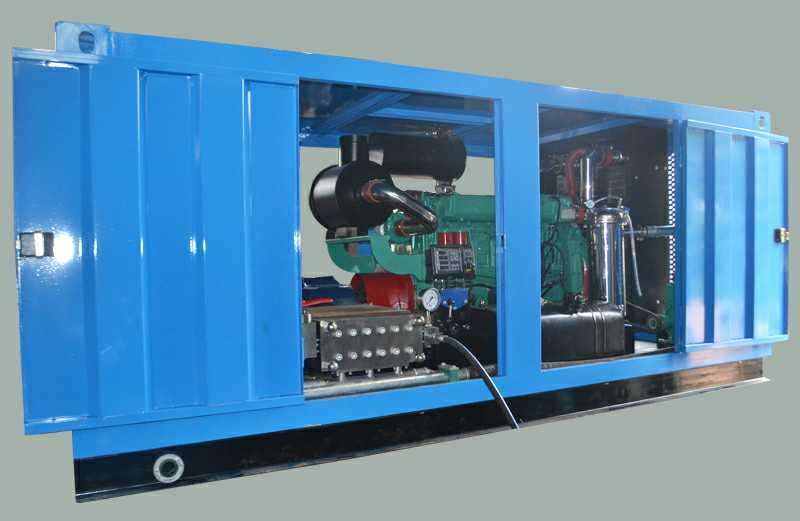 2.高压清洗装置,主要由高压柱塞泵,动力传动装置(马达或柴油机),联轴器,高压软管,脚踏控制阀,喷嘴和工作附件等构成。