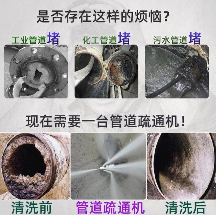 产品详情:管道疏通机简介:管道高压清洗机清洗速度快,疏通效率高。它可以有效性防范管道堵塞。它可以彻底清除排水沟的油污。它确实可以治愈病症并治愈根本缘故。它一次清洁和疏通管道,以以防管道损坏。再度堵塞,操作员不必下井,节约了时间,精力和安全性,避免了沼气中毒。