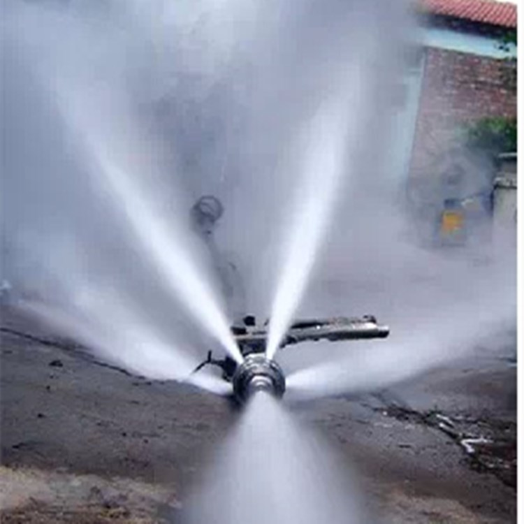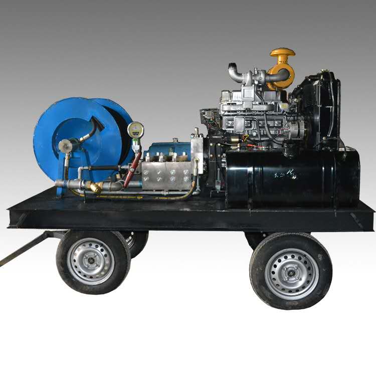 工作原理:曲轴带动连杆促进柱塞促进往复运动。高压水射流是通过关闭进口阀和出口阀而产生的。高压水射流通过高压软管被输送到疏通喷嘴,从而使来自喷嘴后孔的高压水射流冲击。在管壁上产生反作用力,使喷嘴驱动高压管道迅速向前疏通,并采用喷嘴前后喷嘴孔产生的高压水迅速清洗管道。当卷管器将喷嘴向后拉时,高压河水将洗净的污垢从管束中抽出,从而达到疏通管道的目的。