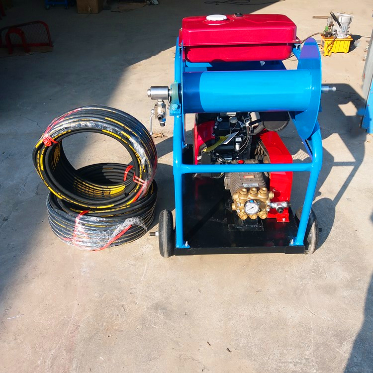 工作原理:挖泥机是高压清洗机的分类。它使用亦然的驱动方式,并使用高压泵柱塞开展往复运动以产生高压水射流。高压喷水通过高压软管抵达疏通喷嘴,高压水从喷嘴的侧面流出。后方的小孔以45度的斜角喷出,以堵塞管壁。喷嘴运用高压水的反作用力驱动高压软管向前疏通。操作员不用放下井,这是迅速且安全的。它是管道疏通和清洁行业中当前的先进疏通设备。