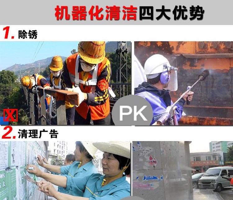 应用领域:可用于地板清洁,构筑物外墙表面清洁,去除小广告,排水沟疏ed清洁,船体锈蚀和油漆去除,海洋生物牡蛎清洁,混凝土图纸,电厂管清洁,鱼粉厂炊具清洗,根雕树皮清洗,铸砂清洗等(注:更多用处,请致电查询!)